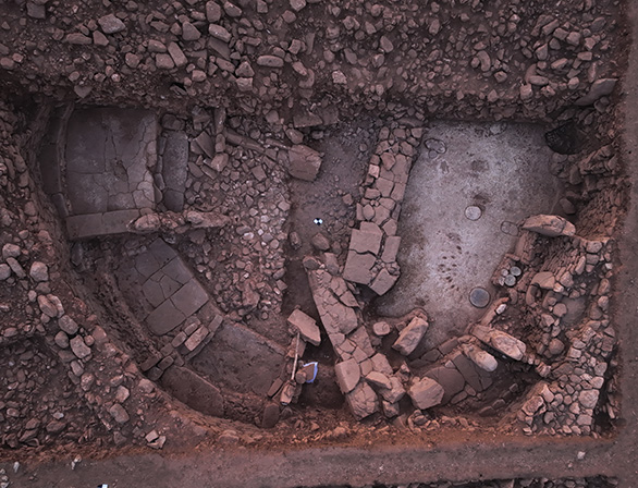 Yıkım sadece bu iki dikilitaştan ibaret değildir. Kenarlardaki dikilitaşların üst kısımlarının bilinçli bir şekilde kırılmış oldukları, hemen çevrelerine dökülen parçalarından izlenebilmektedir. Bu yıkımın ardından gömme işlemi başlamış olmalıdır. Arazini bir yöne eğimli olmasına rağmen yuvarlak planlı bu mekanın içerisinde her yönden taş ve topraktan oluşan, merkeze yönelmiş bir dolgunun olduğu gözlenmiştir. Mekanın içi henüz dolmamışken buraya sürüklenen büyük dikilitaşlar yapı duvarlarını tahrip etmiş ve eğimli bir şekilde adeta duvarların üzerinde asılı kalmıştır. Dolgunun içerisinde de farklı duruş pozisyonlarında orta büyüklükte taşlar vardır. Bu taşların zamanla değil, aksine hızlı bir doldurma uygulamasının sonucu olarak mekanın içerisine bırakıldıkları, dikmeleri arasına atıldıkları, bazı yerlerde de dizildikleri anlaşılmaktadır.